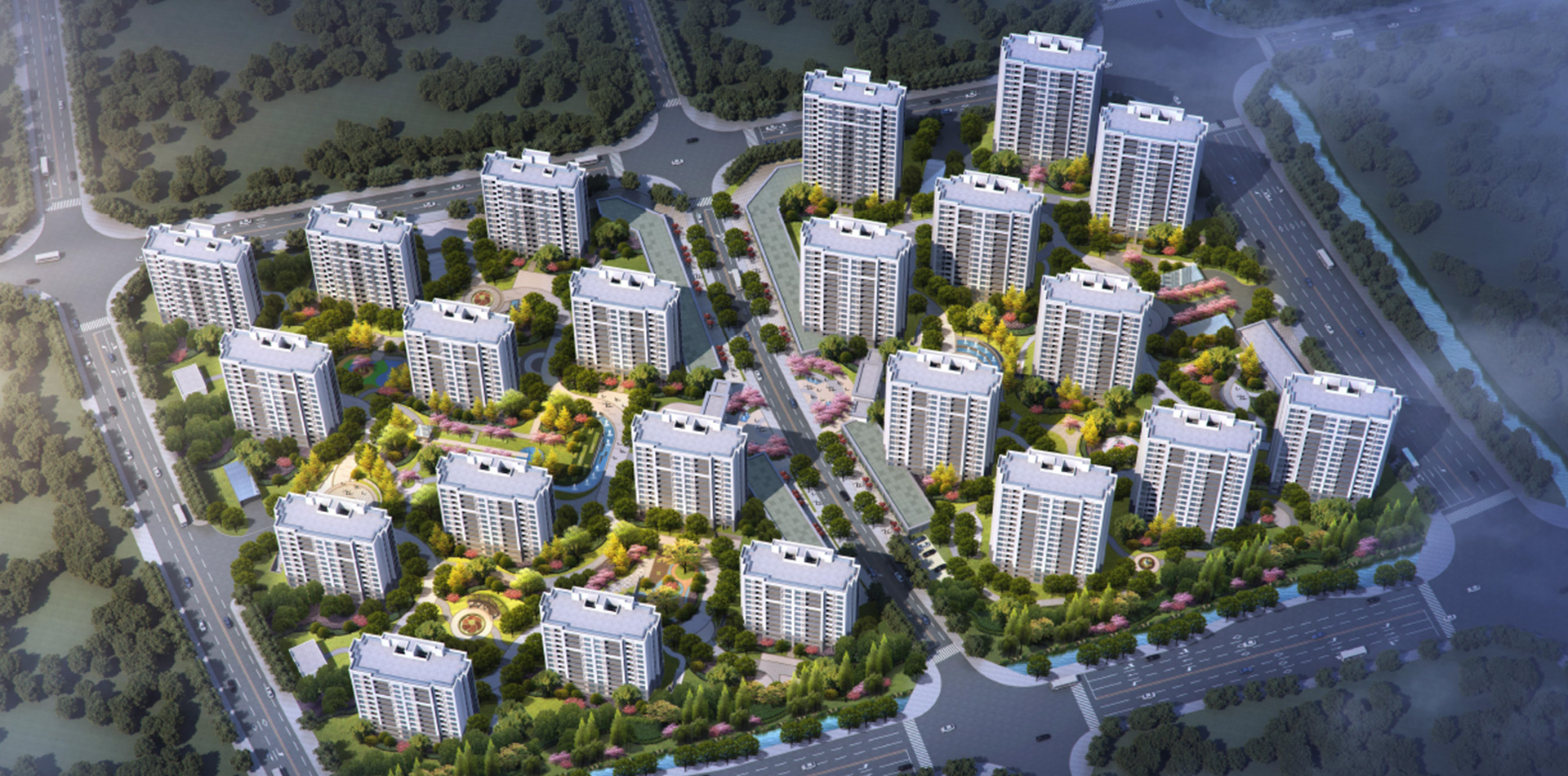 【设计理念】整个项目规划建筑设计本着以人为中心,以整体社会效应与经济效益、环境效益三者为统一为基准点,着重刻画综合配套商业广场、酒店、银行、办公所营造的优质城市生活环境。