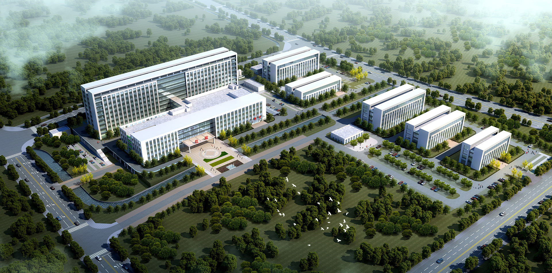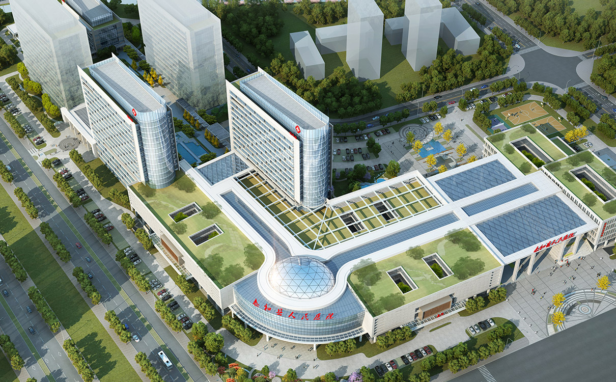 设计理念:采用半集中式的医院布局方式,功能组织紧凑有序,医疗流程简短,设有绿化庭院,使绝大多数房间获得自然通风采光条件,体现“人性化设计”的理念;设计将贯穿用地的水域加以利用,主入口广场通过绿化结合铺地,创建安逸、休闲的就医环境。